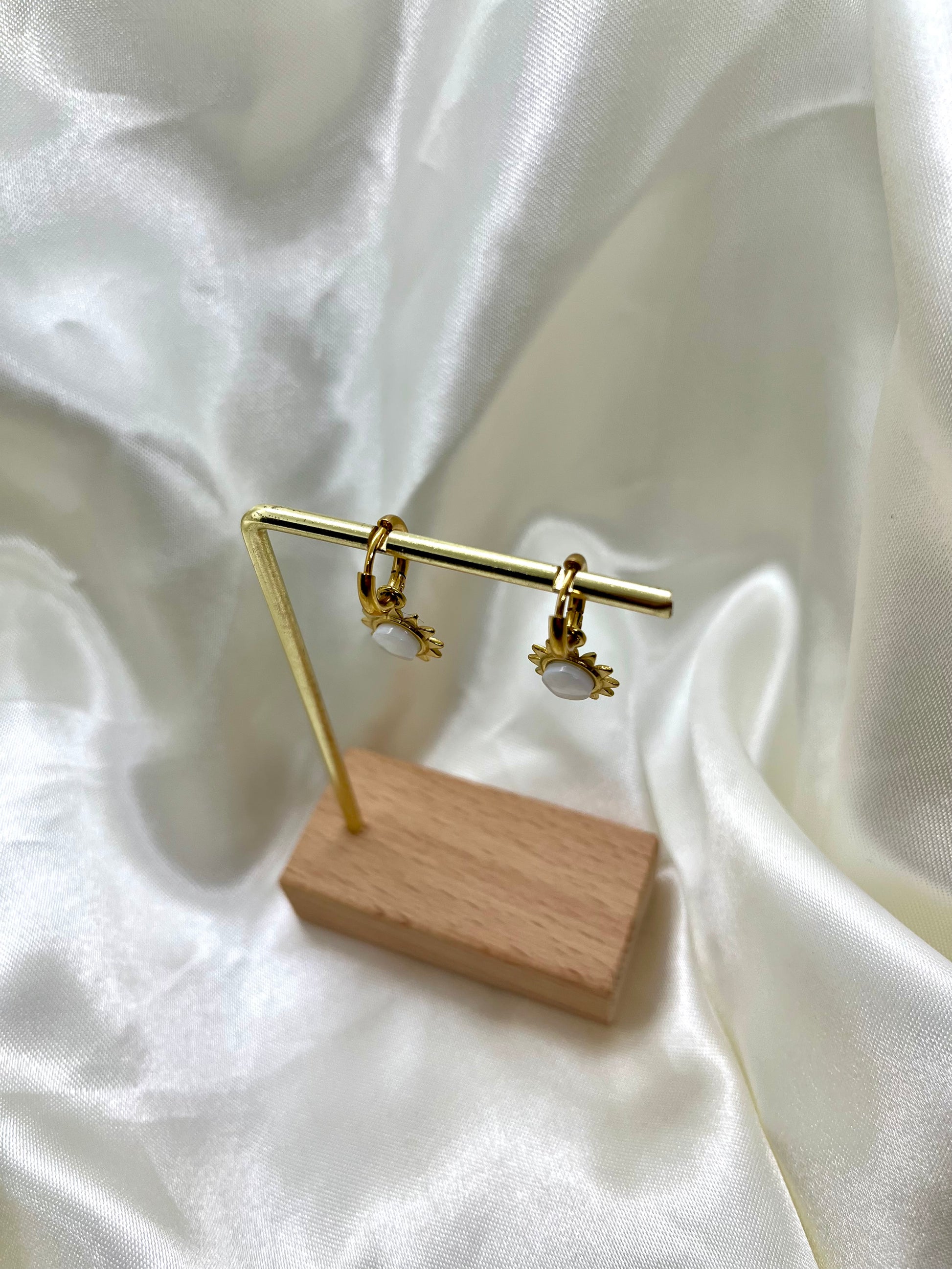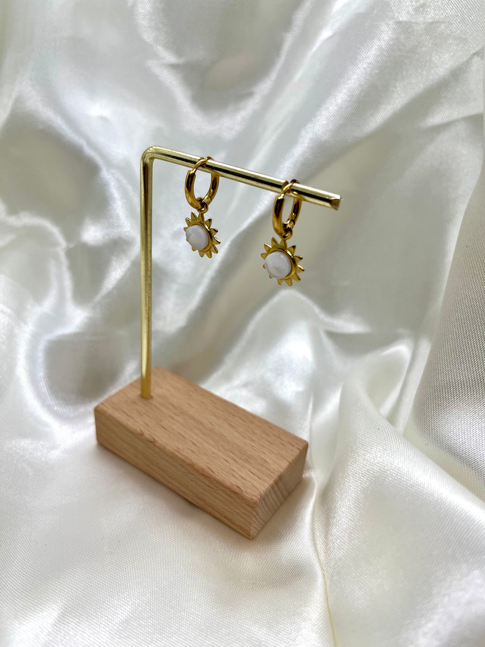 Boucles d’oreilles soleil doré et blanc