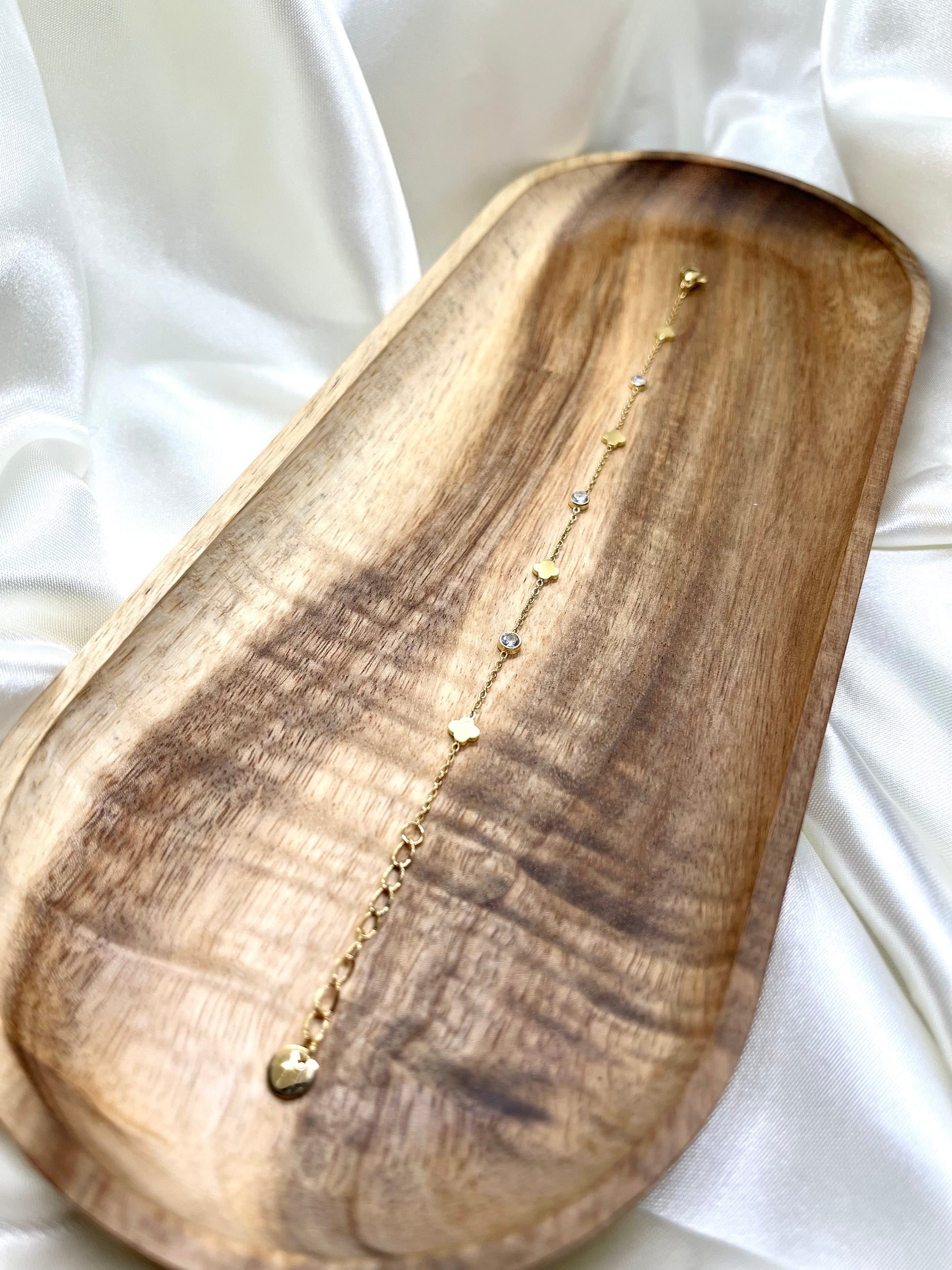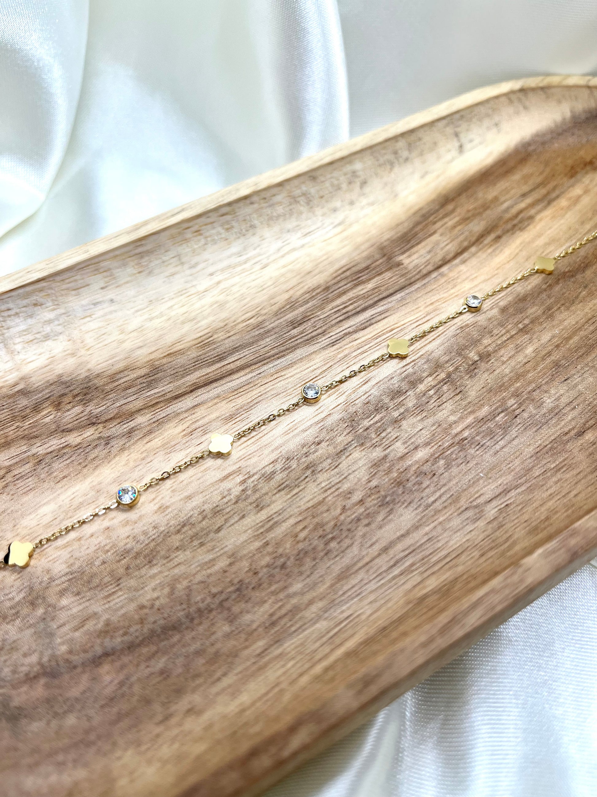 Bracelet doré, fleurs et strass