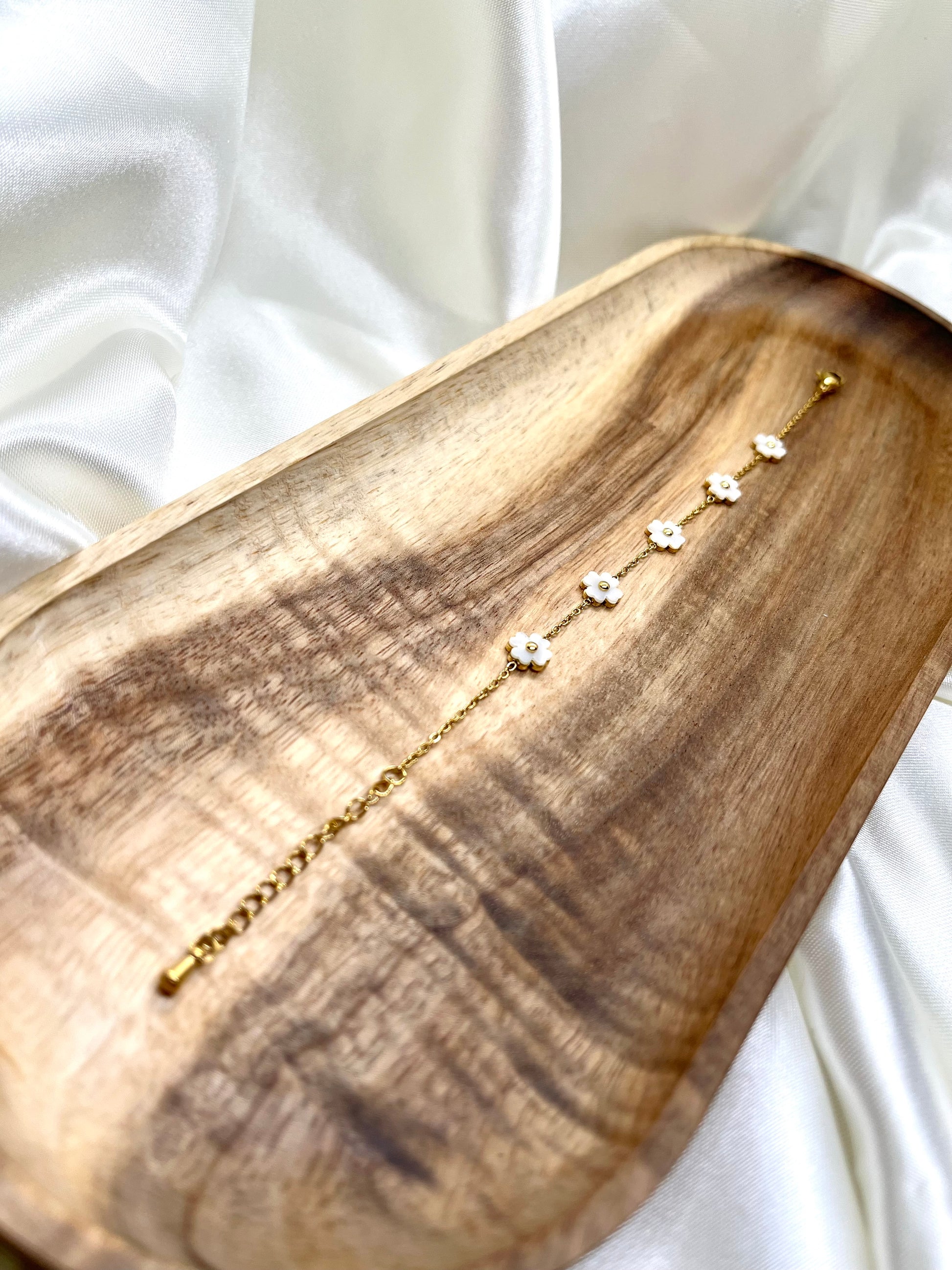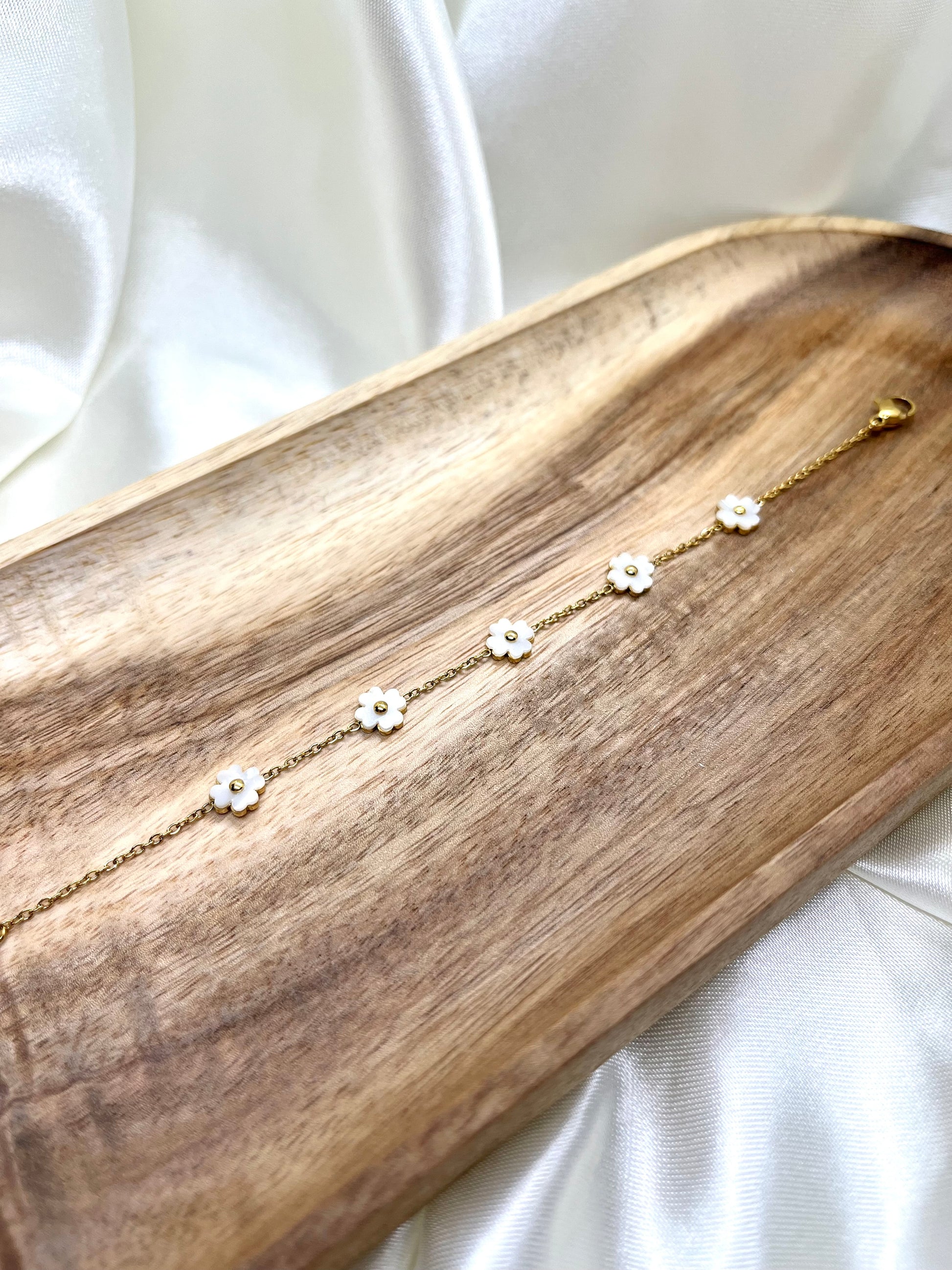 Bracelet doré petites fleurs nacré